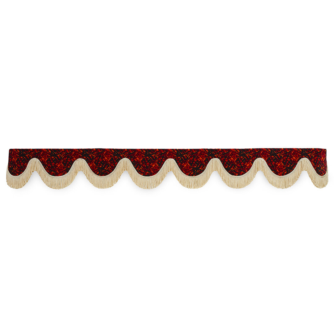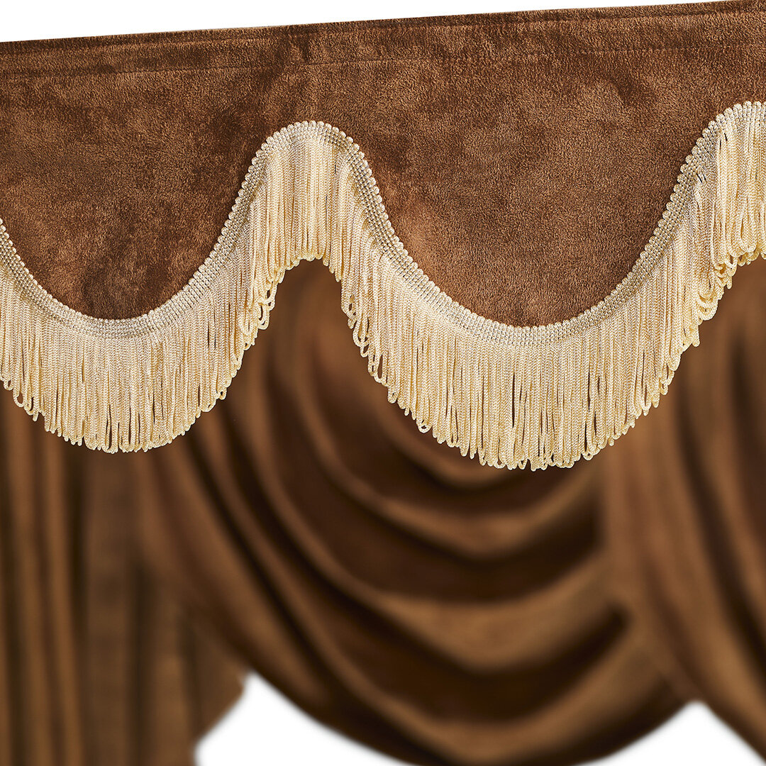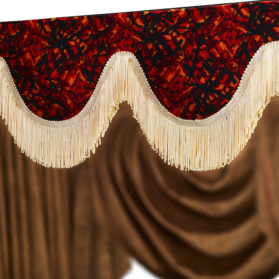 Ontdek onze luxe voorraambanden met 10 stijlvolle bogen, afgewerkt met elegante franjes en handig klittenband voor een moeiteloze bevestiging.