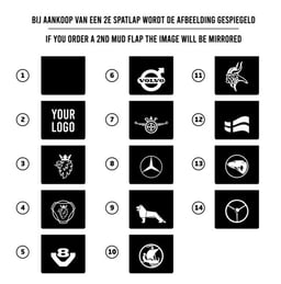 Maak je voertuig compleet met onze spatlappen! Kies tussen onze stugge spatlap (60x35cm) of flexibele spatlap (60x33cm) in zwart of wit. Gegarandeerd stevig en duurzaam, ook perfect voor walking-floor trailers en veetransport. Voeg je logo toe voor een persoonlijk tintje. Eigen productie betekent eindeloze mogelijkheden! Neem contact op voor meer informatie.