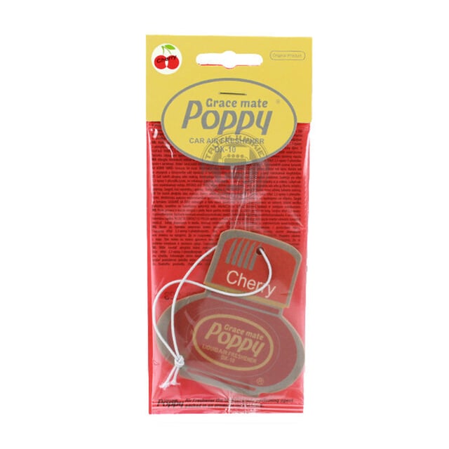 De Poppy Grace Mate Geurhanger Cherry verspreidt een heerlijke kersengeur in de cabine. Deze compacte geurhanger is makkelijk op te hangen en perfect voor vrachtwagens. De geur blijft lang fris, wat zorgt voor een prettige rijervaring. Afmetingen: 10 cm x 7 cm. Gemaakt van stevig materiaal voor langdurig gebruik.
