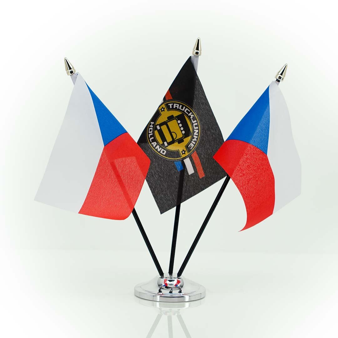 De FLAG-CZ is een kleine vlag die perfect past in vrachtwagencabines. Met een formaat van 10 x 15 cm is deze vlag ideaal voor kleine ruimtes zonder dat je stijl verliest. De vlag heeft een zwarte kunststof staander en een goudkleurige mastkop voor een chique look.