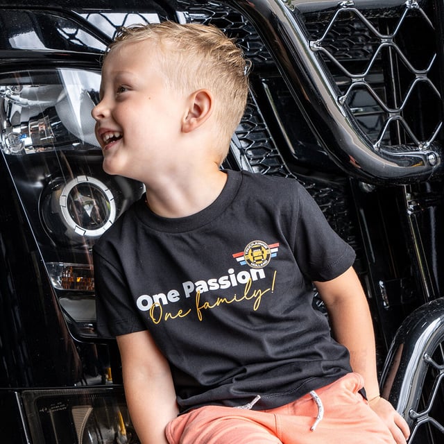 Truckjunkie Barn T-shirt "One Passion One Family" är perfekt för unga lastbilsentusiaster. Detta T-shirt är tillverkat av mjuk bomull, vilket ger komfort och hållbarhet. Det iögonfallande trycket visar passionen för lastbilar och gör det till en riktig blickfångare.
